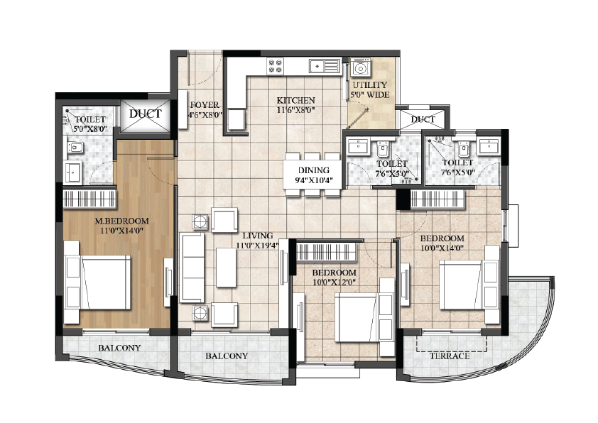 1, 2, 2.5 & 3 BHK